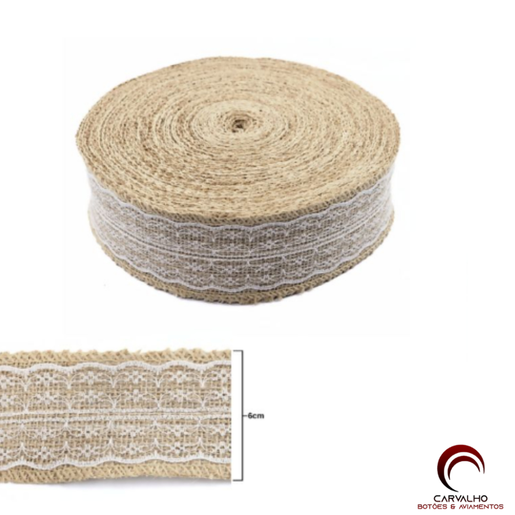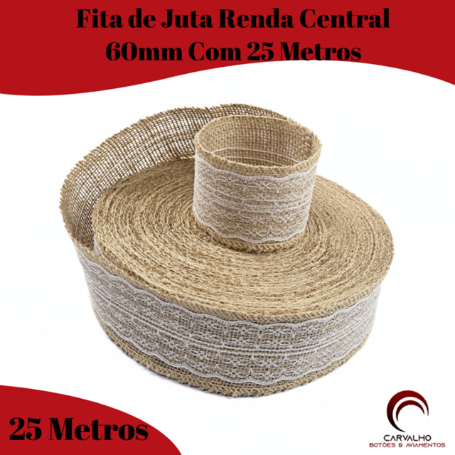 | Fita De Juta Natural Com Renda Branca Central 60mm Com 5 | 10 | 15 ... este produto | R$ 19,50 | 41% | 5.0/5 | 13 |