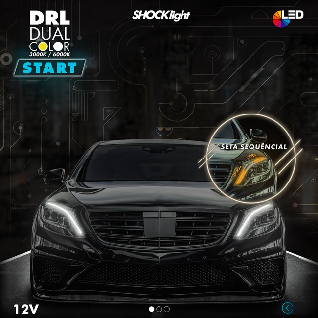 A Shocklight está lançando no mercado nacional a linha de Fita Dual Color disponível em quatros tamanhos: 30cm, 45cm, 60cm e 75cm. A fita permite a instalação com flexibilidade no farol do carro, conta com luzes de LED com duas cores e é à prova d'água podendo ser cortada e instalada do jeito que desejar! A instalação é rápida e é recomendado que seja feita por profissional qualificado. Especificações • Código: SL-DC60 • Tamanho: 60cm • Funcionamento: Possue 2 estágios de cor de luz na mesma barra • 1º Estágio: Luz branca fixa DRL (Luz Diurna) • 2º Estágio: Acionando a seta, pisca na cor Âmbar • Possibilidade de reduzir o tamanho para ajuste de acabamento • Vida Útil de 30000 Horas • Cor: Branca 6000K / Amarela 3000K • LED: 335 • Quantidade de LEDs: 156 • Lúmens: 3120LM • Volts: 12V • Watts: 6.8W Itens Inclusos • 02 Fitas flexíveis de Led