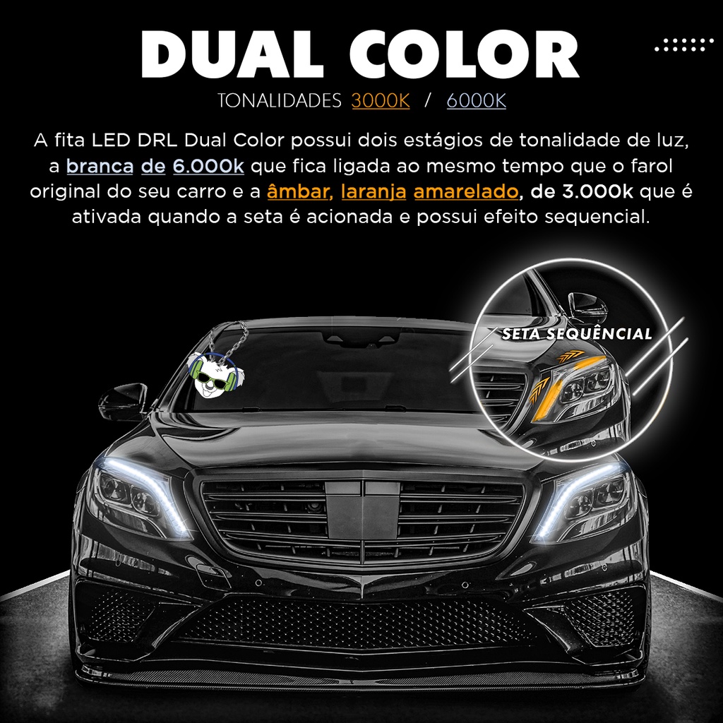 Fita de Led Drl Farol Seta Sequencial Efeito Ghost Start Apresentação Dual Color 3000k / 6000k