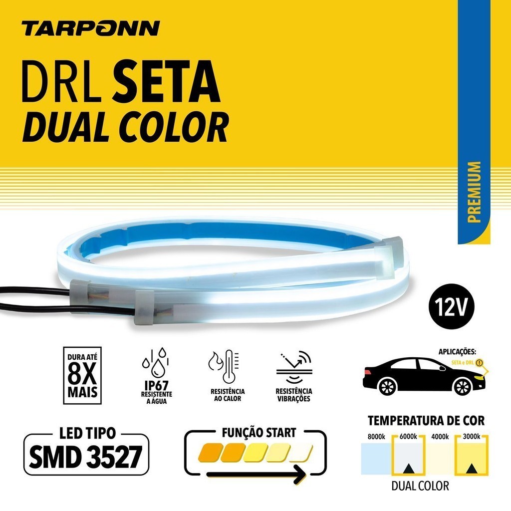 Fita de Led Dual Color DRL Seta Tarponn Farol Dianteiro 60cm