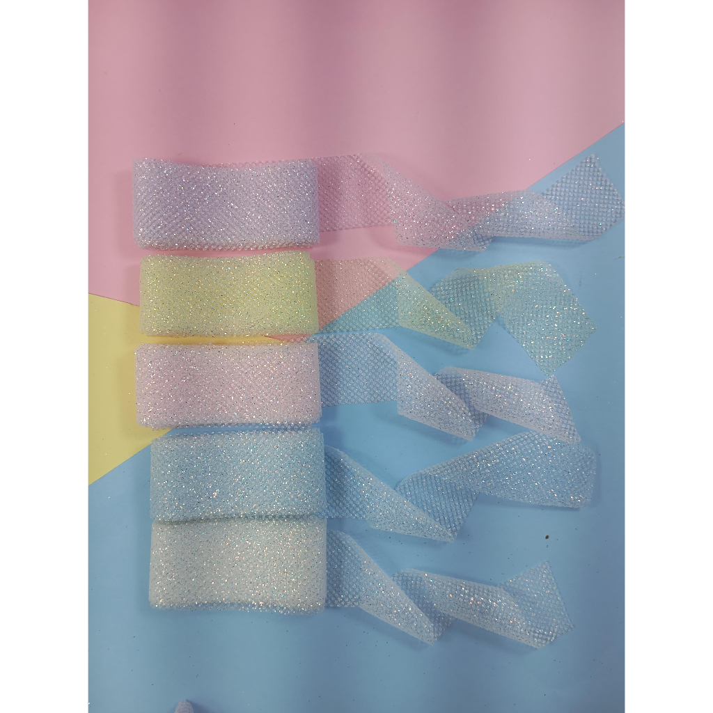 Fita de organza com glitter 38 mm/ rolo com 3 metros