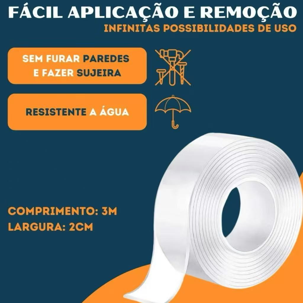 Fita Dupla 3M 5M Face Extra Forte Transparente NanoGel Silicone Mágica Adesiva Cola na Parede Móve