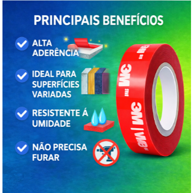| Fita Dupla Face Extra Forte 25mm da 3M Pronta Entrega Kit 1, 2, 3, ... este produto | R$ 18,99 | 20% | 5.0/5 | — |