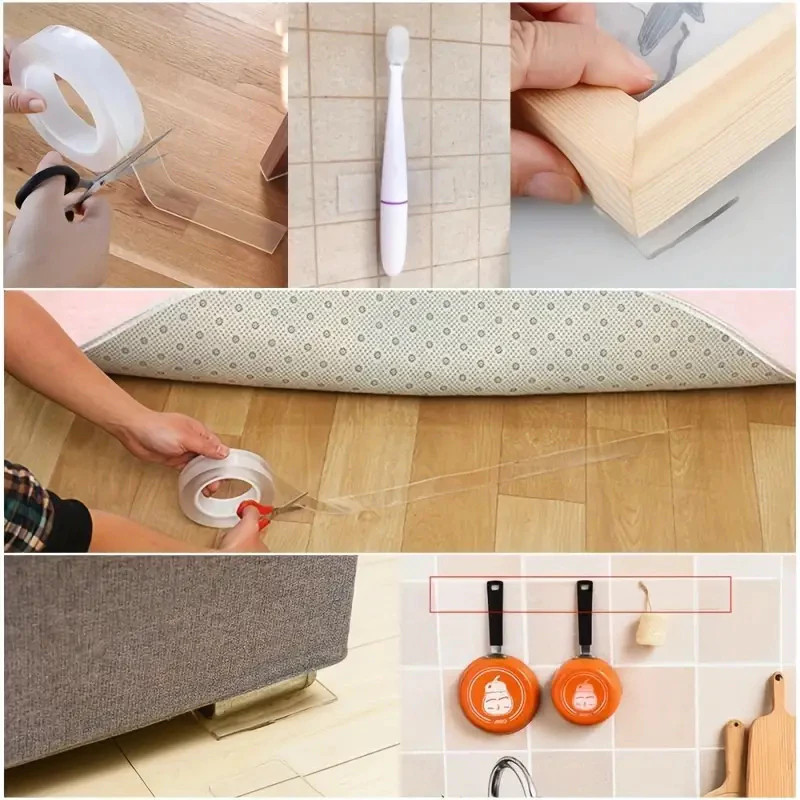 Fita Dupla Face Extra Forte Transparente NanoGel Silicone Mágica Adesiva Cola na Parede Móvel Porta
