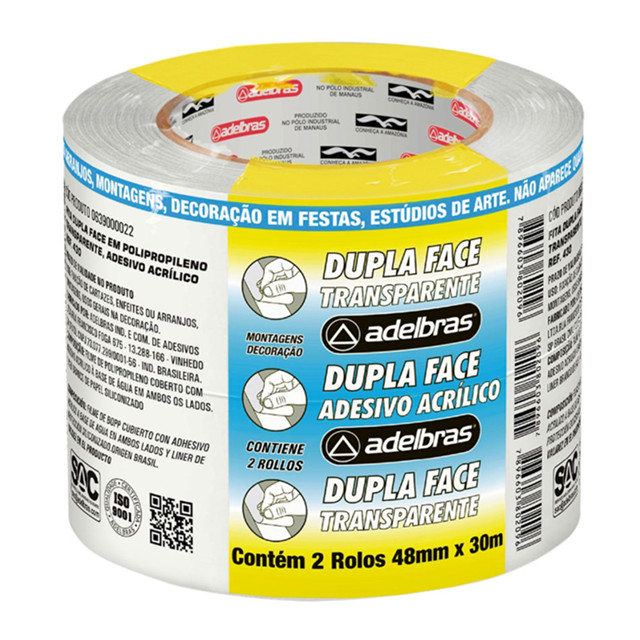 Fita dupla face PP 48mmx30m 430 adesivo acrílico com 2 rolos Adelbras