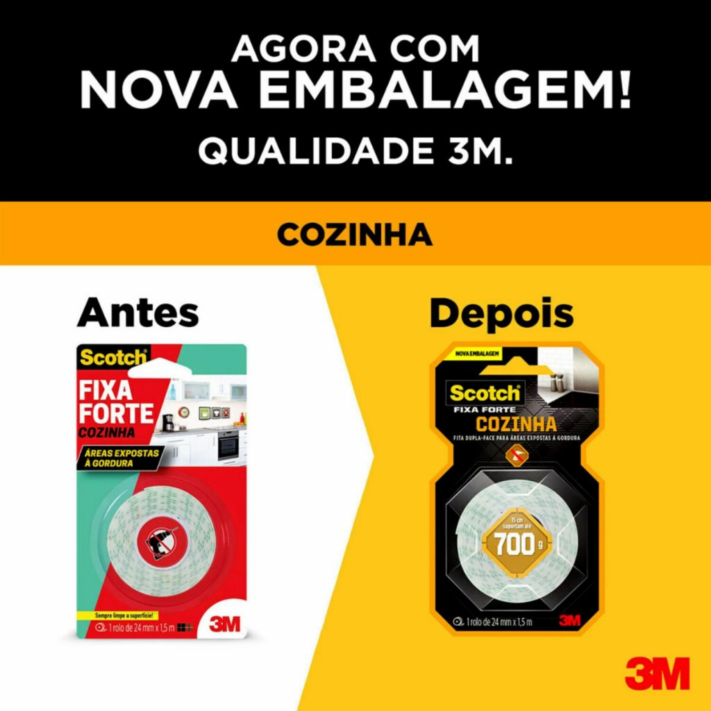 Fita Dupla Face Scotch 1,5 Metros x 24mm Fixa Forte para Cozinha Gordura 3M