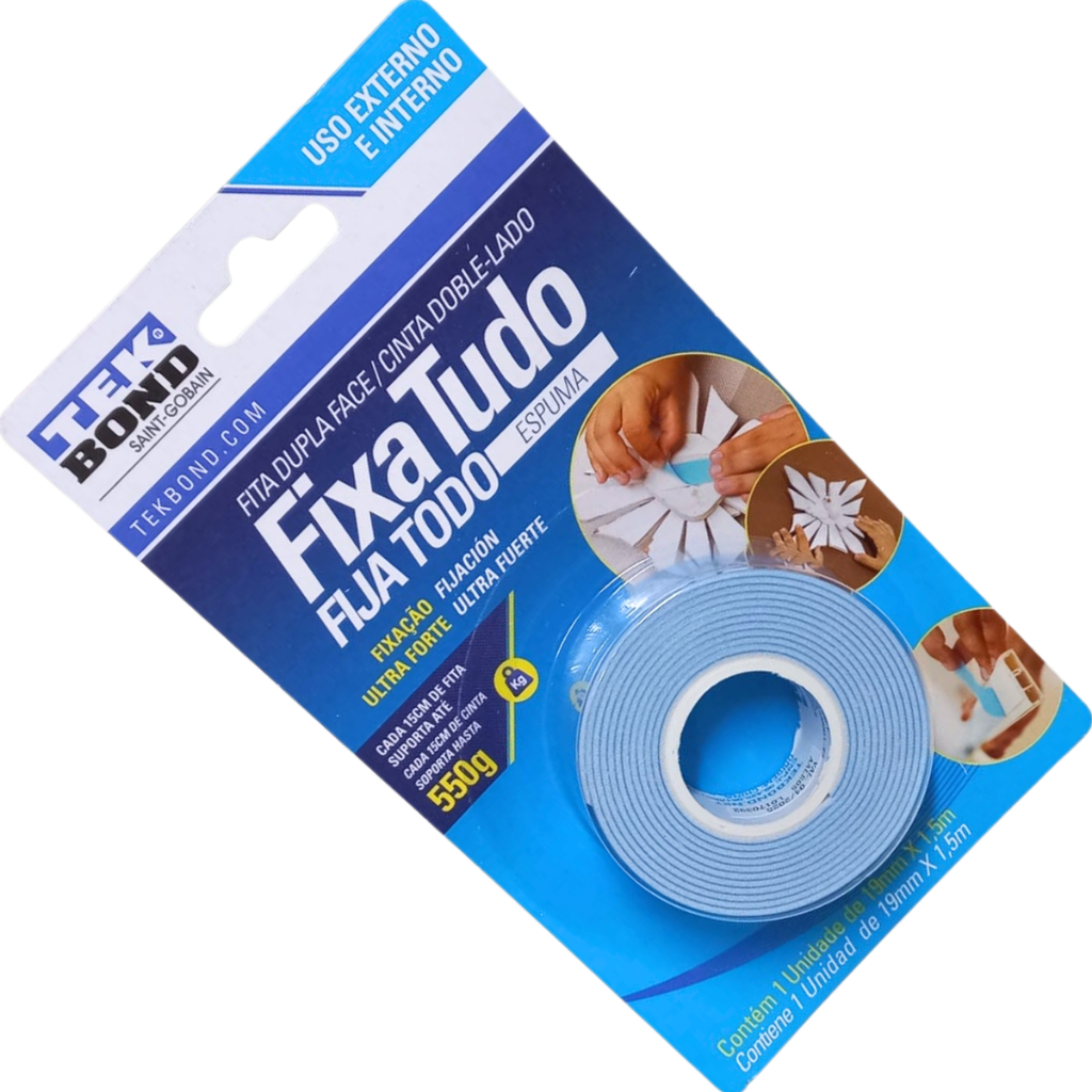 Fita Espuma Dupla Face Fixa Tudo 19mm x 1,5m 550g TekBond