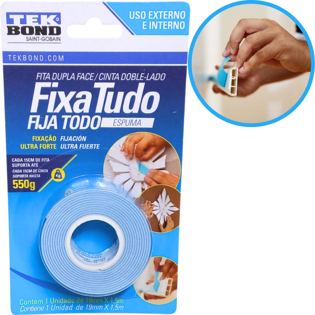 Este anúncio contém: 1 (um) Fita espuma dupla face original da marca TekBond. Código do Fabricante: 21151019502; Código Universal: 7898472262735. A Fita Dupla Face Fixa Tudo Espuma – Uso Externo e Interno da Tekbond é a queridinha de quem faz artesanatos. Isso porque a sua espuma faz as partes coladas “saltarem” aos olhos, em alto relevo. Com esse diferencial você fará incríveis álbuns de recorte (scrapbook), caixas decorativas, molduras e outros tipos de objetos (scrapdecor/arte francesa). Além de todo esse potencial para o artesanato ela também é perfeita para quem prefere evitar o uso de pregos, parafusos ou colas. Além da fixação ultraforte, ela ainda é resistente à ação dos raios UV, chuva e condições climáticas extremas. E o melhor: sem danificar as superfícies ! Fixe quadros, espelhos, objetos decorativos, canaletas e o que mais você precisar. Funciona perfeitamente em papel, madeira, parede, vidro, acrílico e metal. Modo de uso: 1 - Faça a marcação prévia no local da aplicação. Verifique se as superfícies estão totalmente livres de sujeira e oleosidade; 2 - Corte a fita na medida e quantidade certas para sustentar o objeto que deseja fixar. Cada 10cm sustentam 600g. Para isso é fundamental posicionar bem a fita e esperar 48 horas para ela atingir 100% da sua capacidade de carga; 3 - Aplique a fita no objeto desejado e remova o filme protetor; 4 - Pressione o objeto com firmeza, por um minuto, no local desejado. Observações: Somente após 48 horas a fita estará pronta para suportar 100% da sua capacidade de carga. Outra recomendação é aplicar a fita em temperaturas entre 5°C e 40°C. Limitações: Não aplicar em locais com a presença de solventes. Não é recomendado o uso em papéis de parede, nem a sobreposição de pedaços de fitas. Composição: Fita a base de filme polietileno e adesivo acrílico. Dúvidas frequentes: 1 - Trabalhamos apenas com produtos novos, e com garantia; 2 - Produto a pronta entrega; 3 - Seus produtos serão enviados em até 24 horas úteis após a confirmação do pagamento. Sobre a empresa: Somos uma Auto Peças fundada em 1980, atuamos no mercado varejista de peças e acessórios, tendo como principais clientes oficinas mecânicas e consumidor final. Não achou o que procura? Ficou com alguma dúvida sobre o produto? Fale conosco através do campo de perguntas.