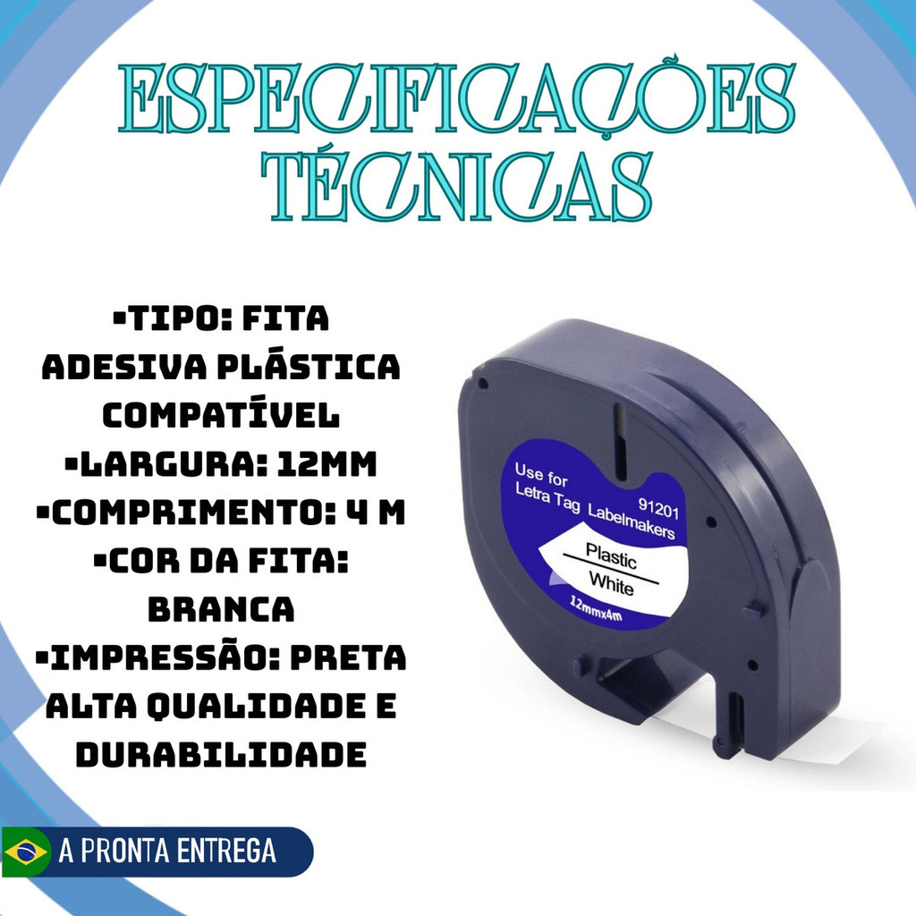 Seja bem-vindo(a) à sua Loja! Produto: Fita Plástica Compatível para Rotulador Dymo LetraTag 91201 – 12mm x 4m – Branca QUALIDADE E PRATICIDADE PARA SUAS ETIQUETAS! Destaques do Produto: Fita Compatível para Rotuladores Dymo LetraTag – Impressões nítidas e duráveis. Largura de 12mm – Ideal para etiquetas organizadas e legíveis. Impressão Preta em Fundo Branco – Visualização clara e profissional. Material Plástico Resistente – Maior durabilidade para suas etiquetas. Fácil Instalação – Basta encaixar no rotulador e começar a usar. Compatibilidade: Referência: LT 91201 Compatível com Rotuladores Dymo da série LetraTag: Dymo LetraTag Plus LT-100H Dymo LetraTag Plus LT-100T Dymo LetraTag LT-100H Dymo LetraTag LT-100T Dymo LetraTag LT-110T Dymo LetraTag QX50 Dymo LetraTag XR Dymo LetraTag XM Dymo LetraTag 2000 Dymo LetraTag 2000 Plus Especificações Técnicas: Tipo: Fita Adesiva Plástica Compatível Largura: 12mm Comprimento: 4 metros Cor da Fita: Branca Impressão: Preta Alta Qualidade e Durabilidade Atenção: Fotos ilustrativas. __________________________________________________ COMPRA GARANTIDA PELA PLATAFORMA MARKETING PLACE. __________________________________________________ Palavras-chave: fita compatível Dymo, fita LetraTag 91201, fita para rotulador, etiquetas adesivas, fita 12mm Dymo, fita para etiquetadora, fita plástica branca, suprimentos Dymo.