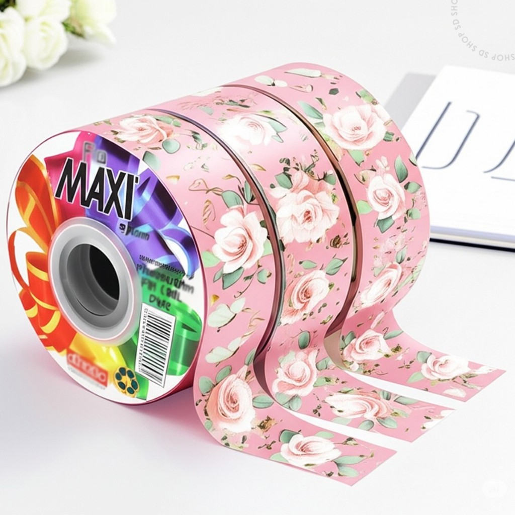Fita Floral Amor Sem Fim Rosa Maxi Albano 32mmX100Metros Laço Presente Embalagem Decoração