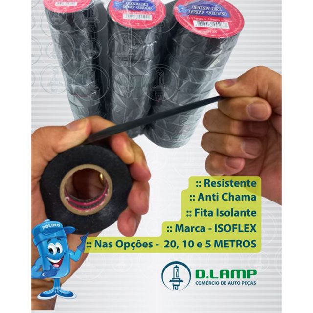 | Fita Isolante Anti Chama Isoflex - 10 Metros 20 Metros e 5 Metros -... este produto | R$ 6,59 | — | 4.9/5 | 11 |