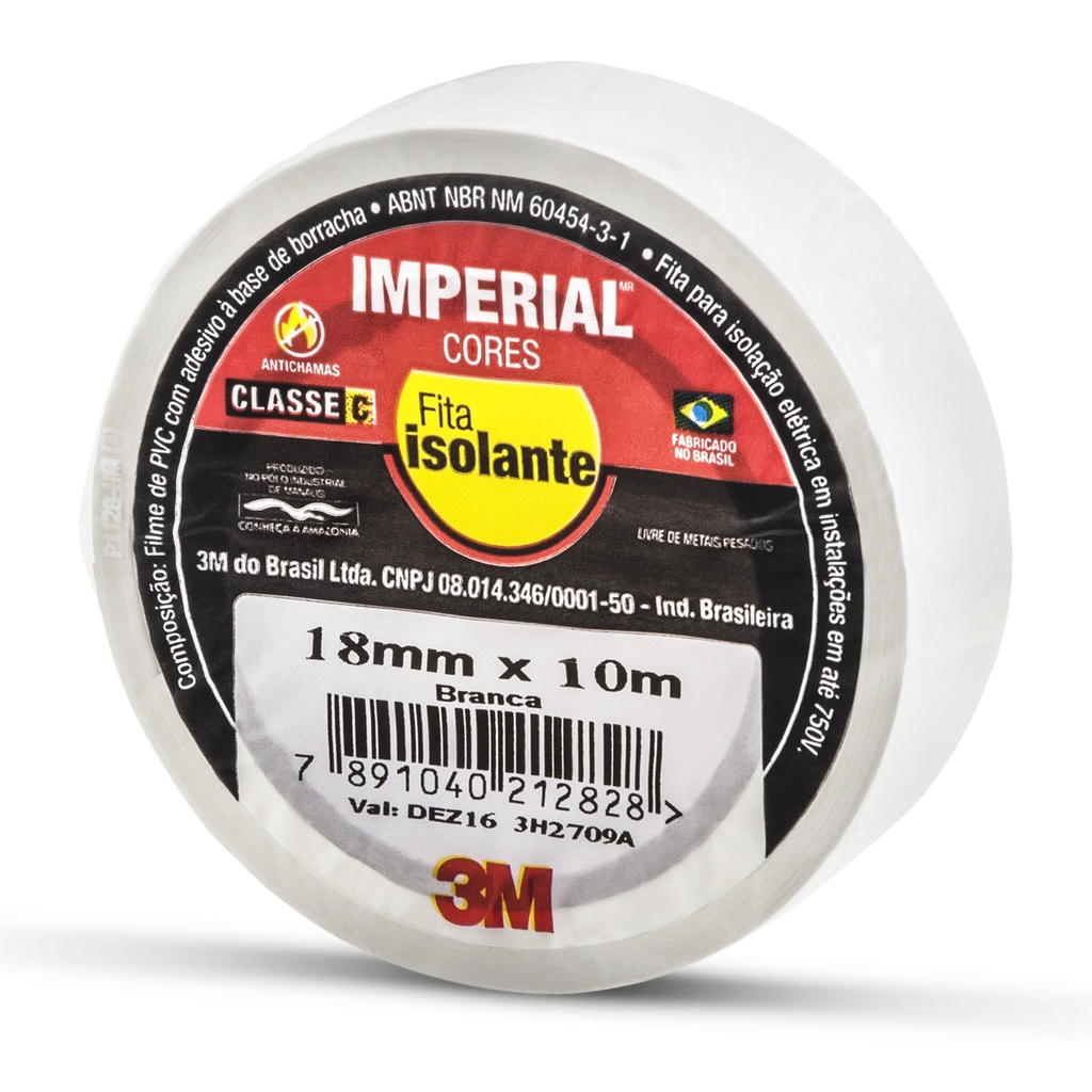 Fita Isolante Branca 10 Metros x 18mm Imperial Cores Uso Geral 3M