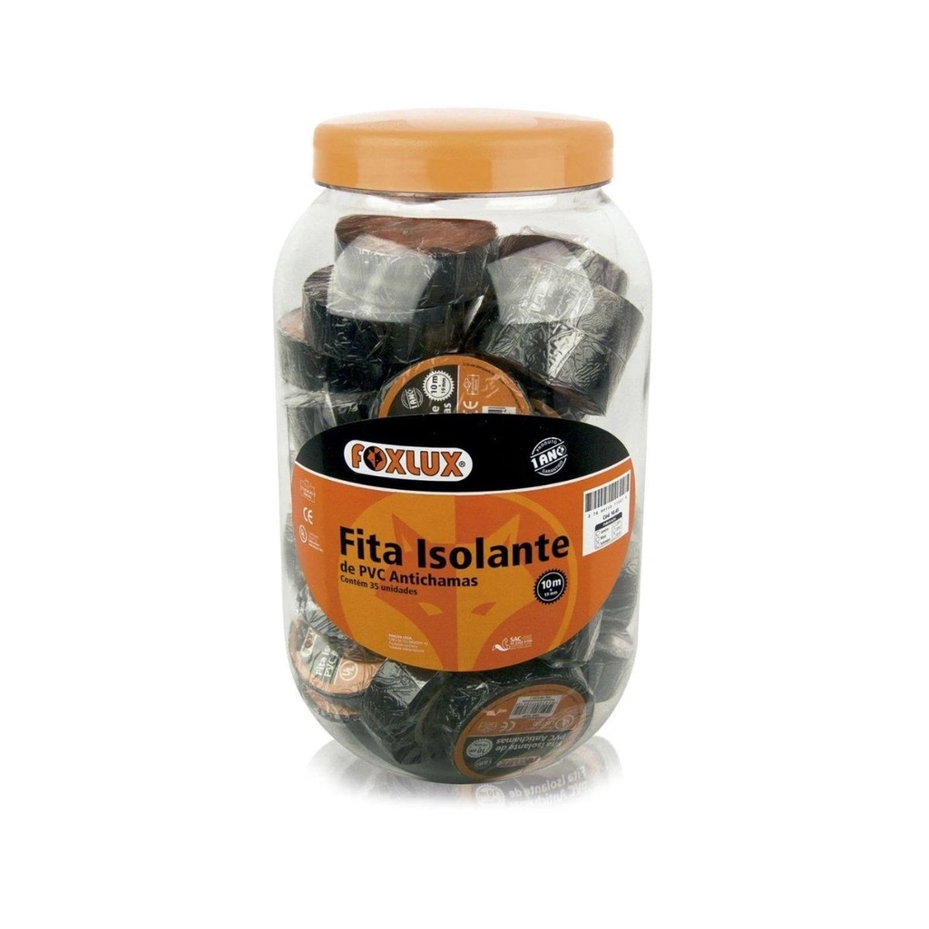Fita Isolante Foxlux PVC Antichamas 5m Pote com 50 Unidades para Isolamento Elétrico