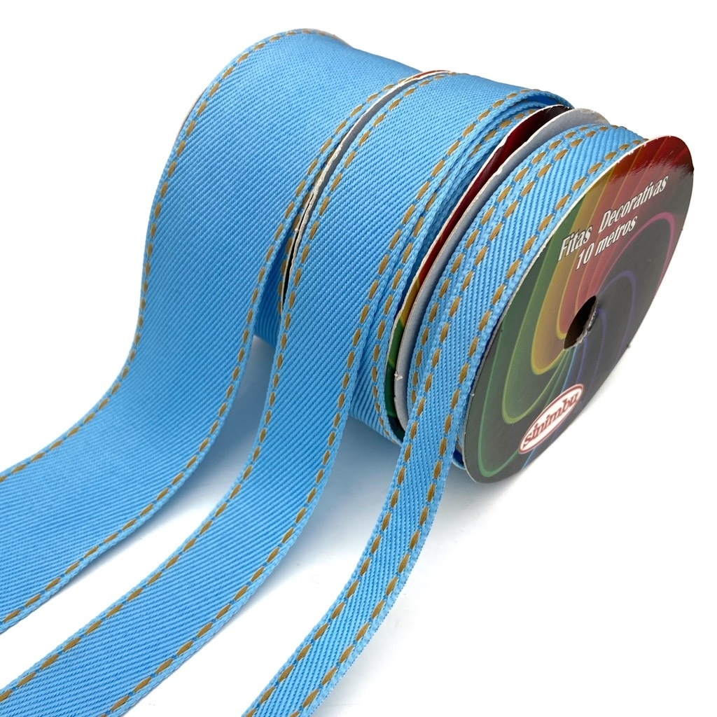 Fita jeans para laços e artesanato sinimbu dulpa face azul rolo de 10 metros envio imediato para todo Brasil