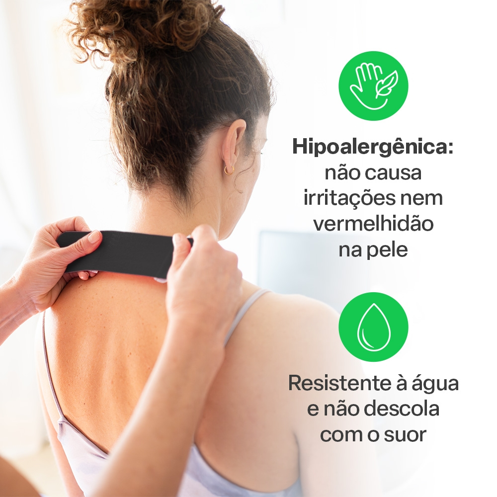 Fita Kinésio Muscle Fix 5x500cm Rolo Multilaser - HC040 A aliada perfeita para quem busca mais conforto, desempenho e segurança durante atividades físicas! A Fita Kinésio Muscle Fix da Multilaser foi desenvolvida para proporcionar suporte muscular, melhorar a circulação e ajudar na prevenção de lesões, oferecendo mais liberdade e confiança nos movimentos. Com composição de 93% algodão e 7% elastano, a Fita Kinésio possui elasticidade ideal para acompanhar os movimentos naturais do corpo, garantindo firmeza sem restringir a mobilidade. Hipoalergênica e resistente à água, ela permanece fixa por longos períodos, mesmo durante treinos intensos, banhos ou suor excessivo. Indicada para diversas regiões do corpo como ombros, pescoço, braços e pernas ela auxilia na redução da fadiga, no alívio de desconfortos musculares e na prevenção de lesões que podem comprometer sua performance. A Fita Kinésio Muscle Fix oferece suporte extra durante exercícios físicos, treinos funcionais, pilates, fisioterapia e atividades do dia a dia. Seu uso ajuda a melhorar a circulação local, estabilizar músculos e articulações e proporcionar mais consciência corporal. Com 5 metros de comprimento, o rolo rende diversas aplicações, permitindo ajustar cortes e tamanhos conforme sua necessidade. Funções e Destaques do Produto - Auxilia na prevenção de lesões - Reduz fadiga muscular durante exercícios - Hipoalergênica e resistente à água - Indicada para ombros, pescoço, braços e pernas - Composição: 93% algodão + 7% elastano - Proporciona suporte muscular e articular - Ideal para esportes, fisioterapia e atividades funcionais - Comprimento do rolo: 5m Ficha técnica Marca: Multilaser Saúde Modelo: Fita Kinésio Muscle Fix 5x500cm Rolo Multilaser - HC040 Cor: Preto Peso: 0,100 Dimensões do produto: (LxAxC): 7,60cm x 7,70cm x 5,40cm Composição do material: 93% algodão e 7% elastano Resistente a liquido: Sim Contem na embalagem: 1 Rolo de fita Kinésio. Garantia: 3 meses Imagens Meramente Ilustrativas.
