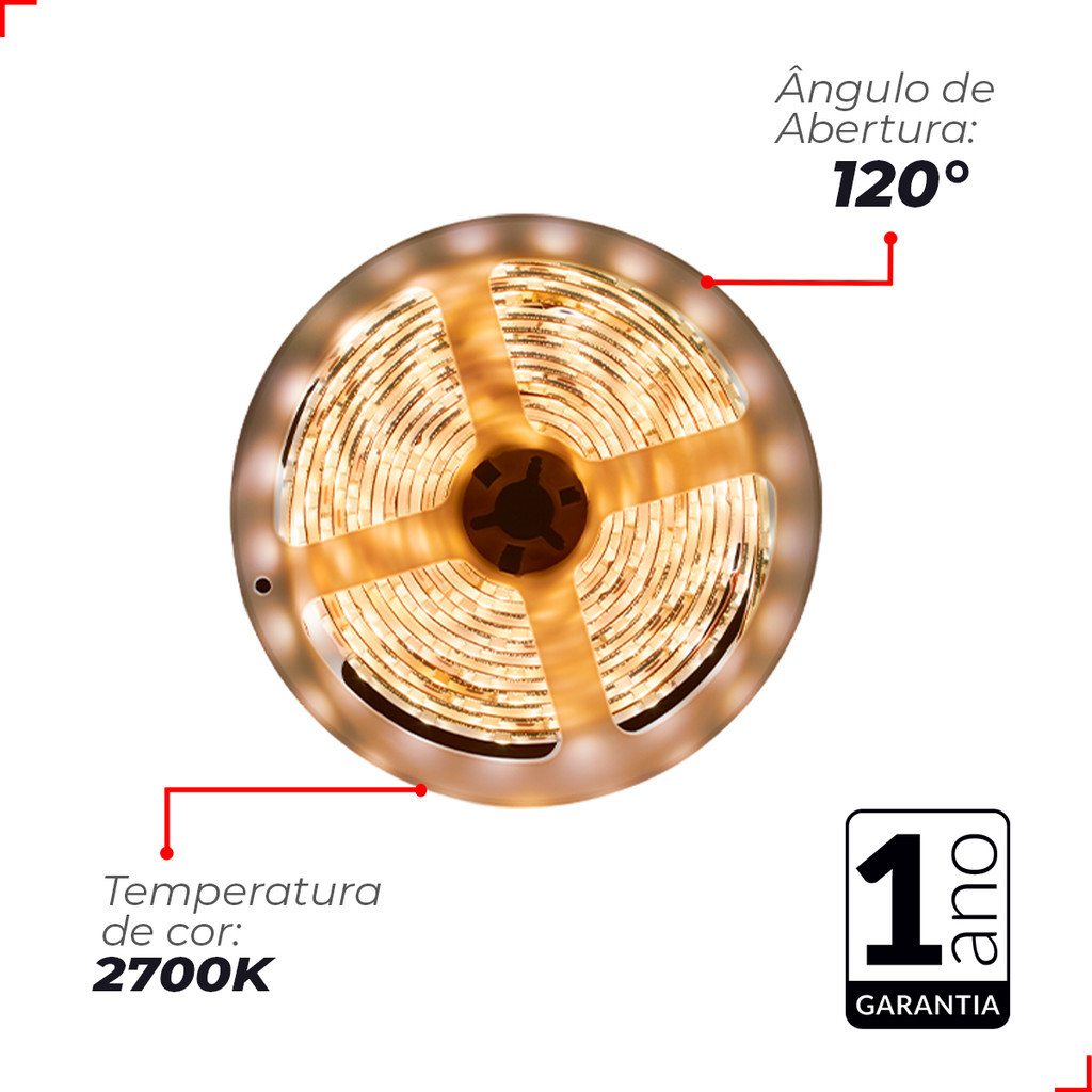 Fita Led Connect 5w 2700k Branco Quente 5 Metros 127v Tensão Direta 60 Leds/m a prova dágua Cod: 148003034 Avant