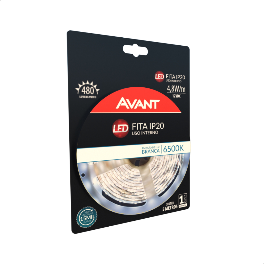 Fita LED Interna 5 metros 6500K 4,8 W/m IP20 110V 220V Bivolt C Fonte Kit Completo Branco Frio Avant