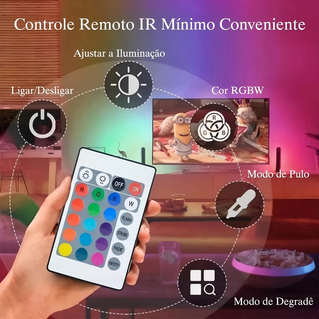 💡 Fita LED RGB 8W 12V – Colorida e Atmosfera Única ✨ Principais Benefícios * 🌈 **RGB Colorido** – Crie ambientes dinâmicos e personalizados com cores vibrantes. * 🔥 **Potência 8W por rolo (3W/m real)** – Luz uniforme e eficiente, perfeita para decoração e iluminação de destaque. * 🛠️ **Fácil Instalação** – Fita de 5 metros com duas pontas de saída, base branca e adesivo azul para fixação rápida. * 💡 **LEDs de Grande Chip** – 54 LEDs por rolo, proporcionando iluminação intensa e duradoura. * 📏 **Placa de Circuito de Alta Qualidade** – Cobre grosso de 18μ, garantindo durabilidade e melhor condução elétrica. * 🏠 **Uso Versátil** – Ideal para ambientes internos e externos (IP20), criando uma atmosfera envolvente. * 🎮 **Controle Total** – Incluso controlador e controle remoto com , permitindo escolher cores, efeitos e intensidade de luz. --- 📐 Especificações Técnicas * Potência: **8W por rolo (3W/m real)** * LEDs: **54 pcs – grande chip RGB** * Comprimento: **5 metros por rolo** * Largura: **8mm** * Voltagem: **12V DC** * Placa de circuito: **Cobre 18μ** * Proteção: **IP20 – uso interno/externo protegido** * Conexão: **Duas pontas de saída, base branca, adesivo azul** * Acessórios inclusos: **Controlador + Controle remoto com bateria grande** --- 🏠 Indicado Para ✅ Criação de ambientes coloridos e decorativos em quartos, salas e escritórios ✅ Iluminação de móveis, prateleiras, painéis e vitrines ✅ Festas, eventos e decoração temática ✅ Ambientes internos e externos que exigem iluminação com efeito RGB e atmosfera envolvente --- 💯 Garantia & Suporte * 🚚 Entrega rápida e segura em todo o Brasil * 🔧 Produto testado com controle rigoroso de qualidade * 🛡️ Garantia contra defeitos de fabricação --- 👉 **Fita LED RGB 8W 12V – transforme qualquer ambiente com cores vibrantes, iluminação eficiente e atmosfera única, perfeita para decoração e festas!** """