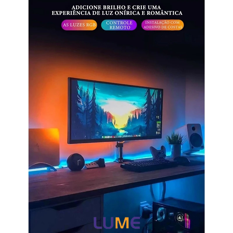 FITA LED RGB 3528 PARA DECORAÇÃO (5 METROS) Transforme ambientes com cores vibrantes e versatilidade! Ideal para ambientes animados, acolhedores ou personalizados, essa fita LED RGB oferece 16 combinações de cores, resistência à água e facilidade de instalação. PRINCIPAIS VANTAGENS 16 Cores Personalizáveis: Misture as 3 cores primárias (vermelho, verde, azul) para criar tons únicos, como branco, roxo e mais. Facilidade de Instalação: Kit completo com fita adesiva dupla face, conexões plug-and-play e controle sem fio. Resistência e Durabilidade: Grau de proteção IP65 (resiste a respingos de água, como chuva), temperatura de trabalho de -20°C a 50°C e vida útil de até 50.000 horas. Economia de Energia: Baixo consumo (até 95% de economia) e tensão de entrada de 12V (compativel com fonte bivolt, opcional). Flexibilidade: Fita flexível para adaptação a superfícies curvas ou planas, com terminal macho/fêmea para conexões rápidas. ESPECIFICAÇÕES TÉCNICAS Modelo LED: SMD 3528 Cor: RGB (colorida via mistura de cores primárias) Quantidade de LEDs: 54 LEDs/m (total: 540 LEDs em 5 metros) Comprimento: 5 metros Ângulo de Visão: 120° Tensão: 12V (sem fonte); fonte bivolt opcional (inclusa no kit según opção) Consumo: Extremamente baixo (até 95% de economia em relação a lâmpadas tradicionais) Temperatura de Trabalho: -20°C a 50°C (sem emissão de calor significativa) Fixação: Fita adesiva dupla face na parte traseira (reforçar com cola em superfícies não planas, se necessário) Controle: 4 modos de transição de cores via controle sem fio ITENS INCLUSOS NO KIT 1 rolo de fita LED RGB 3528 (5 metros) 1 controladora para cores e modos 1 controle remoto sem fio 1 fonte de alimentação (opcional, según escolha do kit com ou sem fonte) DÚVIDAS FREQUENTES ✅ Já vem pronta para usar? Sim! O kit inclui todos os componentes necessários: basta conectar as partes (plug macho/fêmea) e ligar na tomada. A fonte é bivolt (110V/220V). ✅ Quais cores são possíveis? As 3 cores primárias (vermelho, verde, azul) permitem misturas para criar até 16 tons diferentes, como branco (todas as cores acesas juntas) e roxa (vermelho + azul). ✅ Como fixar a fita? A fita possui fita adesiva dupla face na traseira. Retire cuidadosamente o protetor sem danificar a cola; em superfícies não planas, use cola adicional para reforçar. OPÇÕES DE KIT Escolha entre: Kit sem Fonte: Somente fita, controladora e controle (fonte separatista). Kit com Fonte: Inclui fonte de alimentação bivolt para uso imediato. Personalize a quantidade (KIT 1 a 4 unidades). Transforme seu espaço com praticidade, durabilidade e cores ilimitadas! 🌈