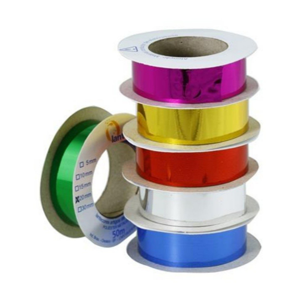 Fita Para Artesanato Cores Variadas Metalóide Metalizada 10mm C/50 mt - 1 Unidade. Sobre o Produto: - Fita Metalóide Metalizada. - Largura: 10 mm (2 cm) - Utilizada em artesanato, artigos de festas, decoração e acabamentos em geral. - Peça com 50 metros - Fabricante: Lantecor *Atenção: Material condutor de eletricidade.*