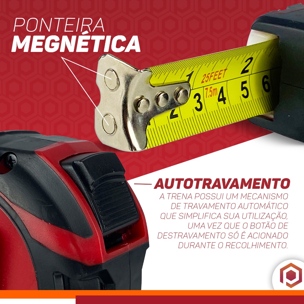 Fita Métrica 7.5 Metros Auto Trava Alta Precisão Trena Metal Emborrachada
