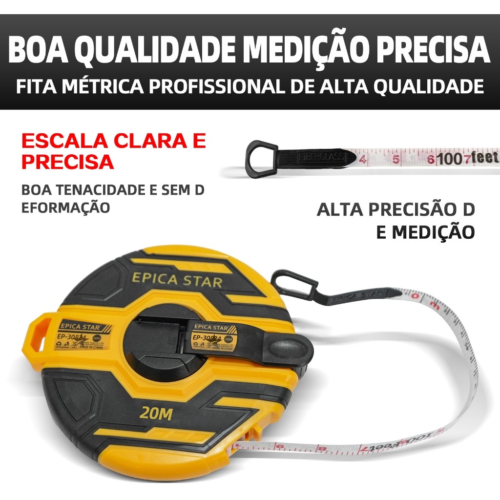 Fita Métrica Fibra de Vidro 20m/30m/50m | Trena Longa Resistente e Impermeável