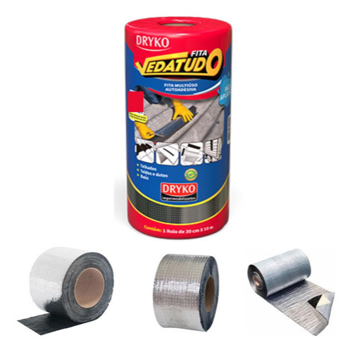 Fita Adesiva Asfáltica Vedatudo Dryko Metalizada 30x10...................................................................................................................................INFORMAÇÕES GERAISFita autoadesiva multiuso à base de asfalto modificado, autoprotegida com filme de alumínio que permite sua exposição a intempéries e aos raios solares, sendo de fácil aplicação, na qual proporcionam medidas imediatas para solucionar problemas de gotejamento e vedações.ONDE APLICARTelhados;Rufos e chapas metálicas;Dutos de ventilação e ar condicionado;Sheds e cúpulas,Vedações de domos e claraboia;Reparos rápidos em baús, toldos e similares;Sistema de reflexão térmica;...................................................................................................................................O grupo SOLUWAN atua neste mercado há mais de 30 anos, possuindo loja física e online.Com 30 anos de história procuramos atender nossos clientes com agilidade, competência, ética e honestidade.Vendemos somente produtos novos e de qualidade garantida.Despachamos em até 24 horas.Entregamos para todo o Brasil. ...................................................................................................................................DÚVIDAS FREQUENTES.....................................................................................................................................Pergunta: Como é embalado o produto?Resposta: Todos os nossos produtos vendidos são embalados em caixas lacradas ou plástico stretch. Em respeito ao meio ambiente 90% das caixas são reutilizadas.Pergunta: Quem faz a entrega?Resposta: A entrega é terceirizada, feita via CORREIOS ou TRANSPORTADORA.Pergunta: O envio é feito em quantos dias?Resposta: Nós enviamos o seu pedido no prazo máximo de 24 horas após a confirmação de sua compra, sendo um dos envios mais rápidos da plataforma.Pergunta: Os produtos são novos ou usados?Resposta: Todos os produtos que trabalhamos são novos e com qualidade garantida.#vedatudo #fita #asfaltica #dryko #auto #adesiva #facilaplicação #impermeabilizantesGarantia do vendedor: 0 meses