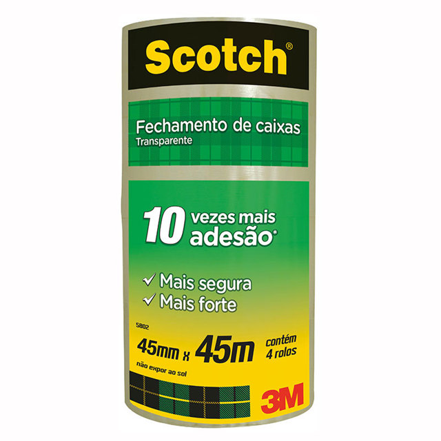Tenha a garantia de que caixas e embalagens chegarão devidamente seladas no seu destino e evite violação utilizando a Fita de Empacotamento Scotch®. Seu filme é 10% mais grosso e, por conta disso, 20% mais resistente. Esta fita também tem tratamento especial no dorso do filme que proporciona um desenrolar mais fácil e suave. A Fita de Empacotamento Scotch® conta com adesivo "Hot Melt", que aumenta progressivamente a adesão da fita após sua aplicação, oferecendo ainda mais segurança à selagem. Trabalhe mais tranquilo, ganhe tempo, evite desperdícios e retrabalhos utilizando produtos com qualidade Scotch®. Detalhes: - Medidas: 45mm x 45m - Pacote com 4 rolos - Maior desempenho para fechamento de caixas. - O filme 10% mais grosso garante mais resistência - A tecnologia do adesivo hot melt aumenta a adesão com o passar do tempo - 10 vezes mais adesão que os adesivos acrílicos.