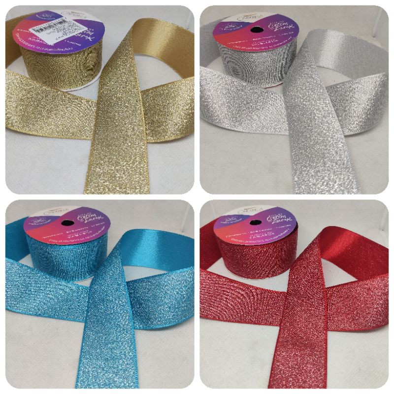 Fita para Laço cetim com Lurex Cinderela 38/22/10mm com 10 Metros (fita nao aramada)