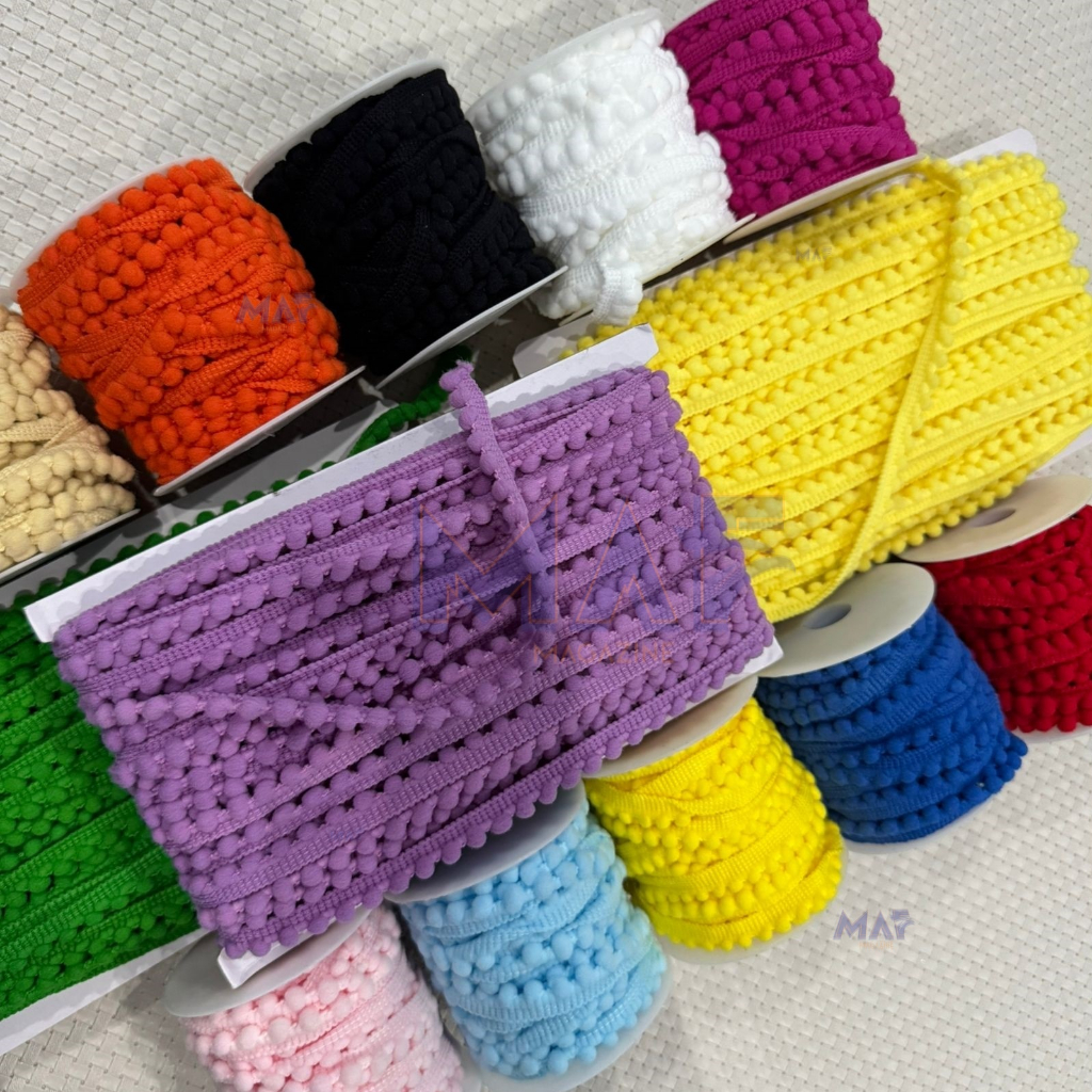 Fita Pompom Passamanaria 1cm x 2mts Cofrinho Caixinha Personalizada Luxo Festa Infantil mini pompm