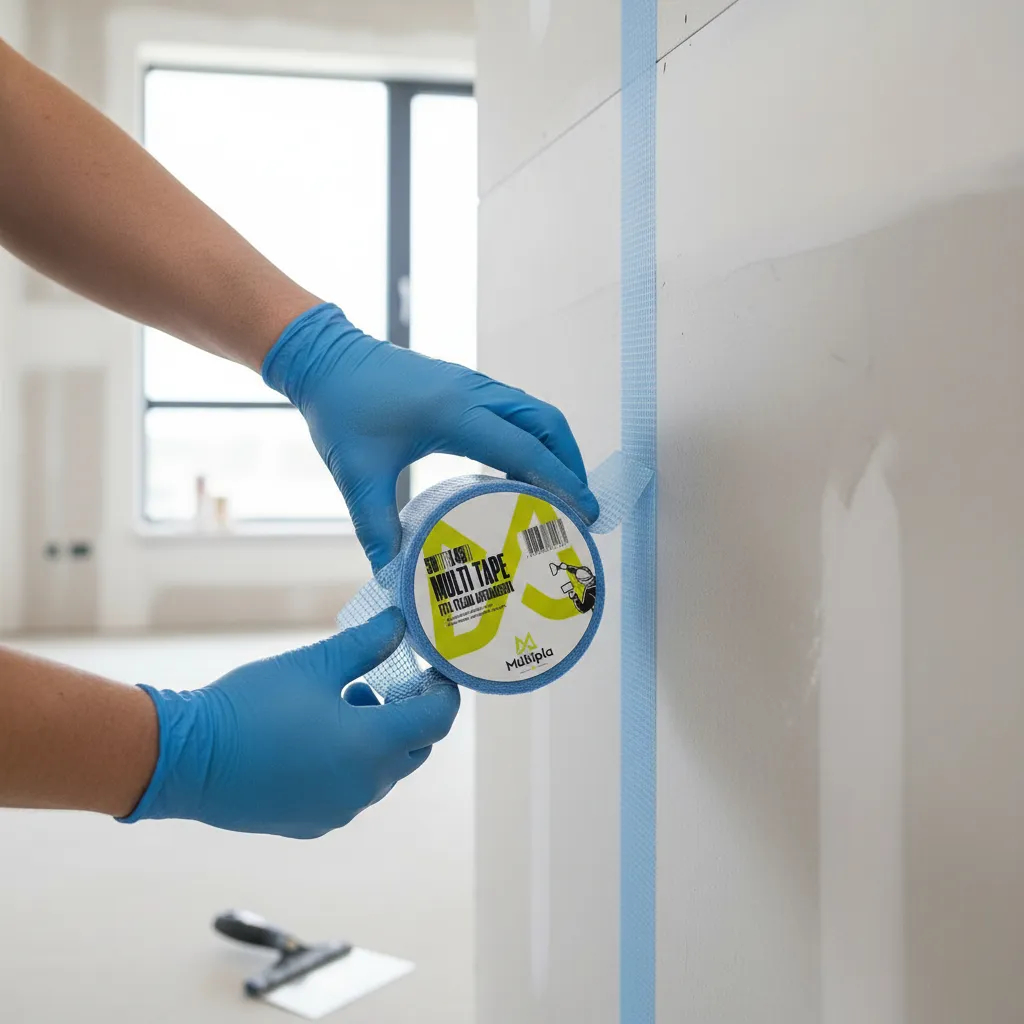Fita Telada Azul Premium 45M x 50MM – Fibra de Vidro Autoadesiva - Drywall, Gesso e EPS