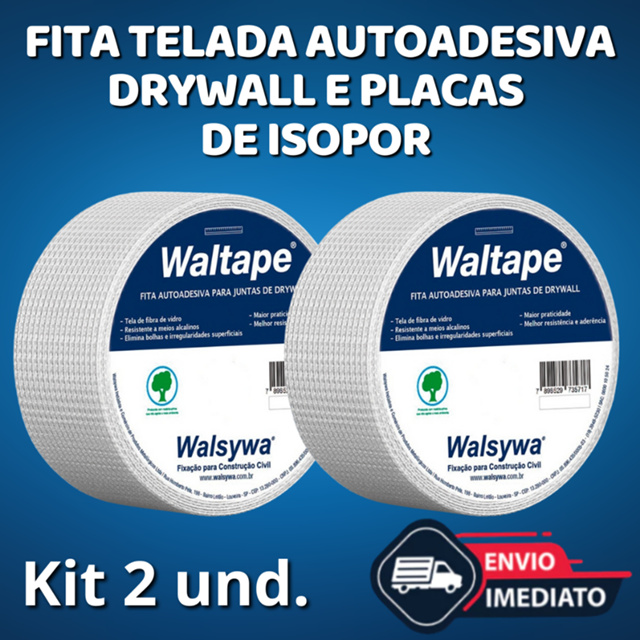 🛠️ Fita Telada Autoadesiva de Fibra de Vidro 9x9 - Kit 2 Rolos de 45 Metros – Walsywa 🛠️ Ideal para Drywall, Isopor, Reparos em Gesso, Trincas e Acabamentos! A Fita Adesiva Telada Para Drywall, Gesso e Trincas Waltape é um produto que facilita a instalação e o acabamento de paredes e forros de gesso acartonado. Ela é composta por uma malha de fibra de vidro revestida com adesivo, que permite uma aplicação rápida e sem a necessidade de massa corrida ou cola. Por possuir uma trama entrelaçada, sua malha de 9x9 permite melhor aderência e adesividade na superfície, conferindo uma excepcional resistência à atração empregada, impedindo o surgimento de problemas no acabamento ao longo do tempo. Com comprimento de 45m (metros) e uma largura de 48 mm (milímetros), a Fita Adesiva Telada Para Drywall, Gesso e Trincas Waltape é perfeita para cobrir e reforçar as juntas entre as placas de drywall, placas cimentícias, evitando rachaduras, fissuras e outros danos que possam comprometer a integridade da estrutura. A Fita Adesiva Telada Para Drywall, Gesso e Trincas Waltape oferece diversas vantagens, como: - Maior resistência à fissuras e trincas, pois a malha de fibra de vidro distribui as tensões sobre a superfície; - Melhor acabamento, pois a fita é fina e discreta, não deixando marcas ou relevos na parede; - Economia de tempo e material, pois a Fita Adesiva Telada Para Drywall, Gesso e Trincas Waltape dispensa o uso de massa corrida ou cola, reduzindo o tempo de secagem e o desperdício; - Facilidade de aplicação, pois a fita já vem com adesivo e pode ser cortada no tamanho desejado, bastando pressioná-la sobre a superfície onde vai ser aplicada. ✅ Alta qualidade Walsywa – marca referência em construção civil! ✅ Autoadesiva – fácil aplicação, sem sujeira ou necessidade de cola ✅ Malha 9x9 – estrutura reforçada, ideal para evitar rachaduras ✅ Resistente à umidade, mofo e alcalinidade Aplicações recomendadas: ✔️ Juntas entre placas de drywall ✔️ Reforço de cantos e superfícies de gesso ✔️ Reparos em fissuras e trincas em paredes e tetos ✔️ Acabamento mais resistente e durável Especificações Técnicas: 📌 Marca: Walsywa 📌 Tipo: Fita telada autoadesiva 📌 Composição: Fios de fibra de vidro 📌 Malha: 9x9 📌 Cor: Branca 📌 Tamanhos disponíveis: : 48 mm (largura) x 45m (comprimento) 📌 Kit com 2 Fitas! 💡 Dica: Para um acabamento perfeito, aplique a fita sobre a junta limpa e seca e finalize com massa para drywall.