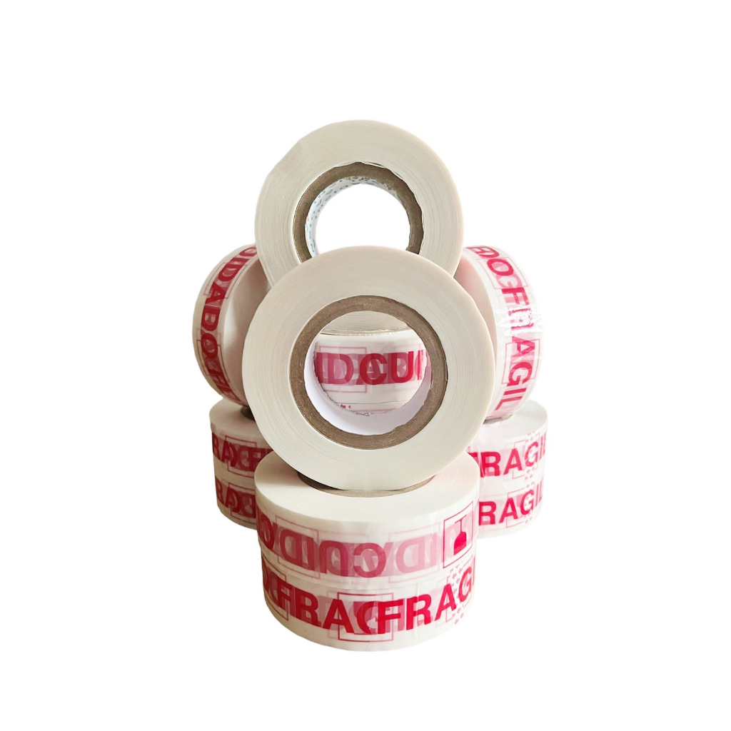 Fita Tipo Durex Branca Cuidado Fragil Kit Com 5 Rolos de 500m Para Embalar Caixa Resistente Barato Pronta Entrega