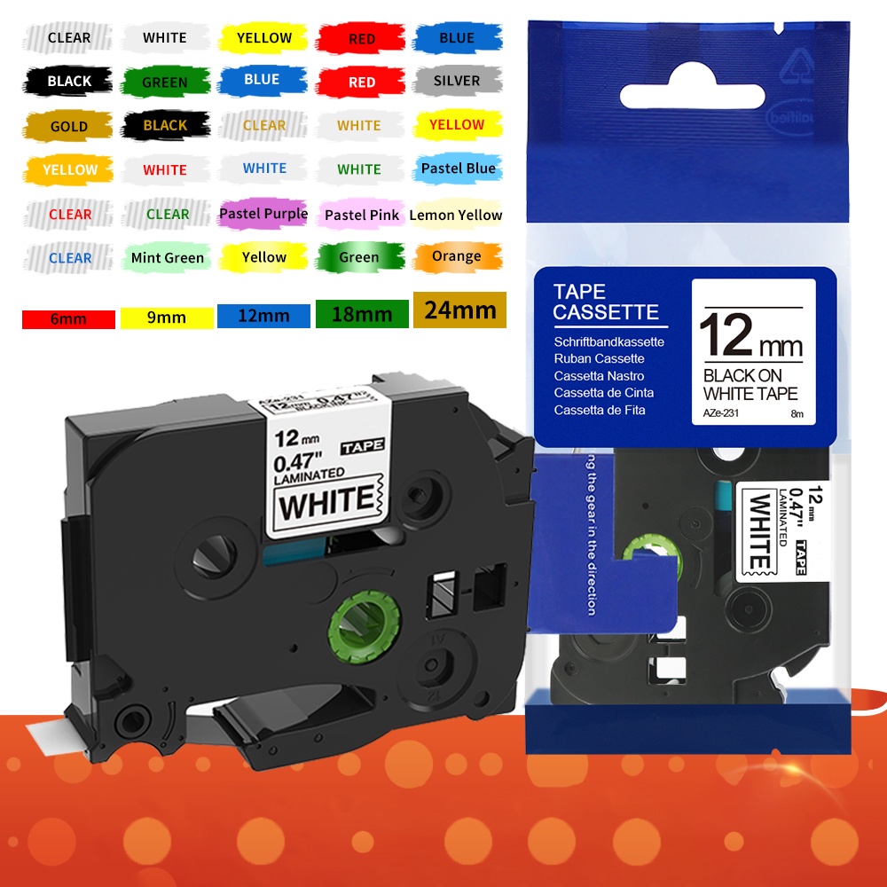 Fita TZE Compatível 6/9/12mm tze231 tze221 Brother-231 Adesiva De Rótulo Laminada Refil Label Maker P-Touch PTH110