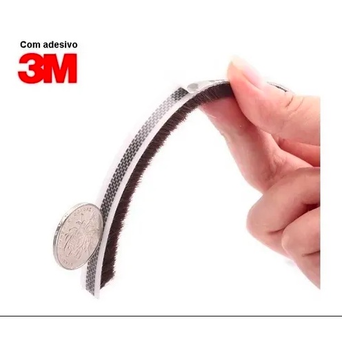 Fita Veda Fresta 7x12mm - Escovinha Vedação para Porta E Janela - Adesivo 3M