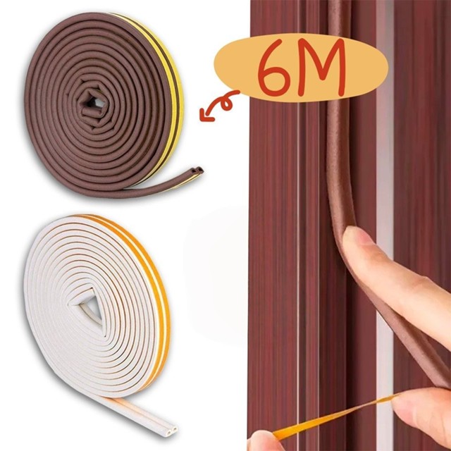 Fita Veda Fresta Adesivo Branco Marrom 6 Metros Anti Ruido Isolante Acústico Porta e Janela