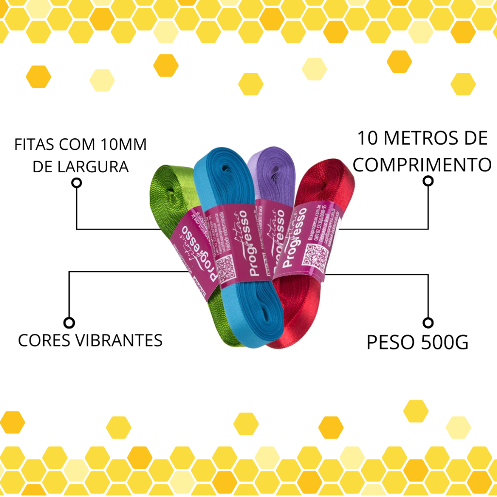 Fitas De Cetim Progresso 10MM de Largura X 10 Metros
