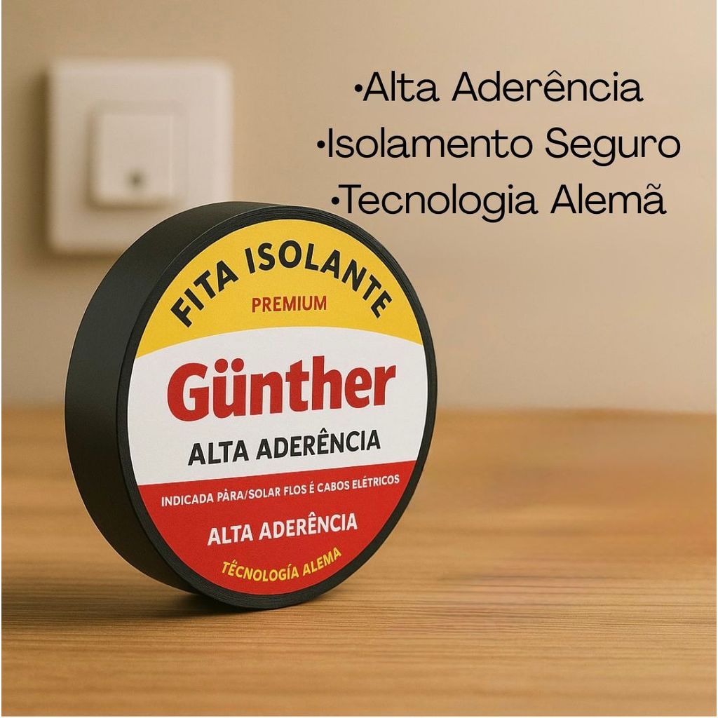 Fita Isolante Gunther – Qualidade Alemã para Máxima Segurança A Fita Isolante Gunther é fabricada com tecnologia alemã de alta precisão, garantindo isolamento elétrico confiável e durabilidade superior. Ideal para instalações residenciais, automotivas e profissionais, ela oferece excelente aderência e resistência, mesmo em condições mais exigentes. -Qualidade Alemã: Produção com rigor técnico e materiais de primeira linha. -Alta Aderência: Fixa com firmeza, sem descolar com o tempo. -Isolamento Seguro: Evita curto-circuitos, choques e falhas elétricas. -Resistente a Temperaturas: Mantém eficiência em ambientes quentes ou frios. -Durabilidade Superior: Não resseca facilmente e oferece longa vida útil. -Flexível e Fácil de Aplicar: Adapta-se a curvas, cantos e superfícies irregulares. -Uso Versátil: Ideal para reparos, instalações, automóveis, eletrodomésticos e muito mais.