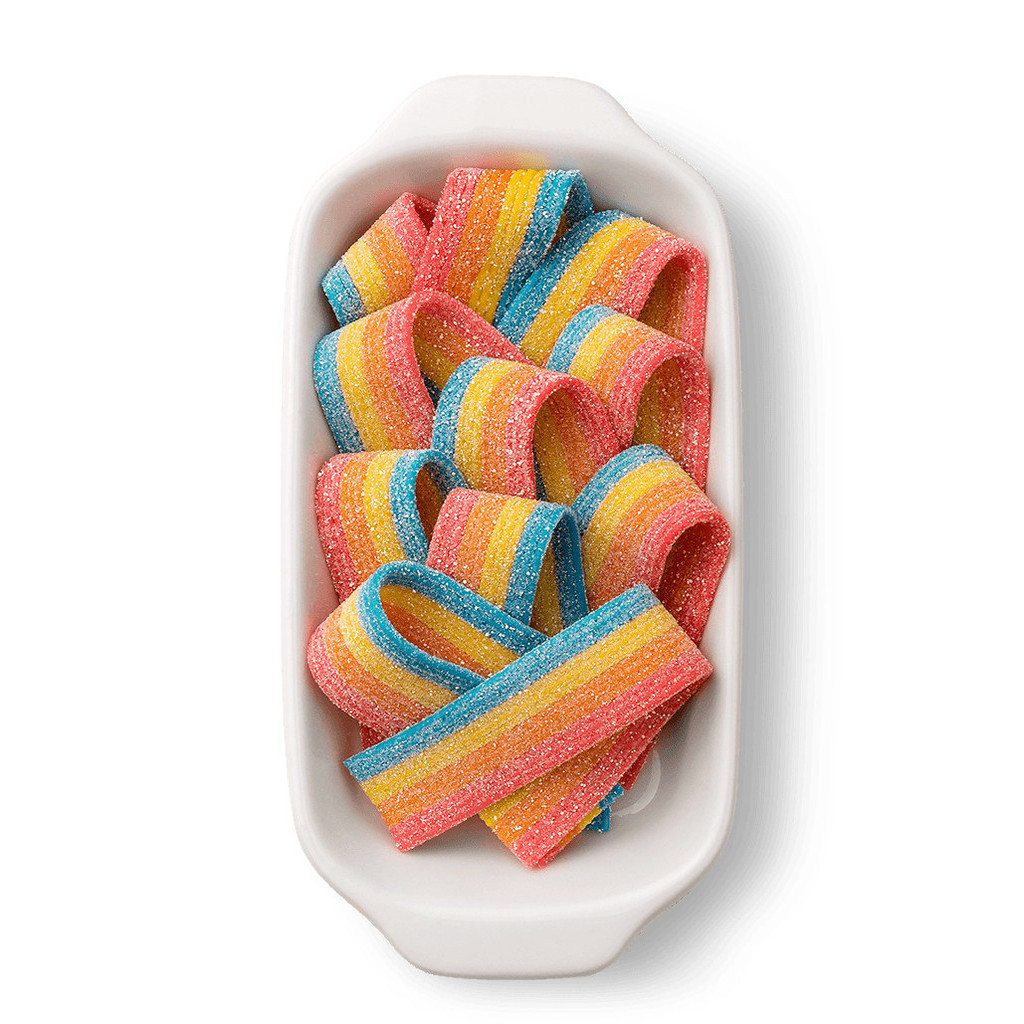 Além de linda, essa fitinha colorida tem sabor de morango cítrico - aquele toque azedinho que a gente ama! Cada pacote de 70g tem 8 tiras.