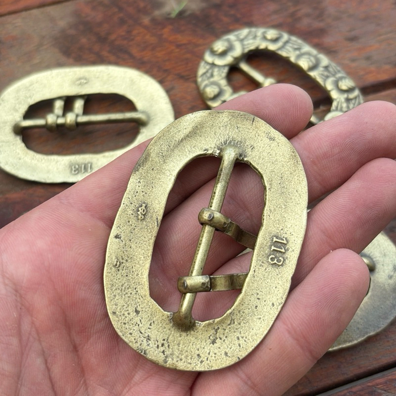 Fivela 113 8 Rosas EXCLUSIVA A Fivela 113 8 Rosas é uma peça exclusiva, desenvolvida a partir do molde original da fivela de alpaca, preservando sua autenticidade e tradição. Fabricada com uma liga especial de metais fundidos e finalizada com banho em Ouro Velho Alpaca, essa fivela combina alta qualidade, excelente resistência e um ótimo custo-benefício. Com acabamento refinado, a peça apresenta detalhes meticulosos, incluindo a numeração e a tradicional corneta 📯, conferindo identidade e valor histórico ao acessório. MEDIDAS Fivela 113 8 Rosas - Passada do cinto 4.9 cm - Altura 7.2 cm - Largura 5 cm (Não enferruja!) Recomendada: Correias Guaiacas Bainhas Porta capa Não recomendada: Contra látegos Loro (Locais que fazem muita força)