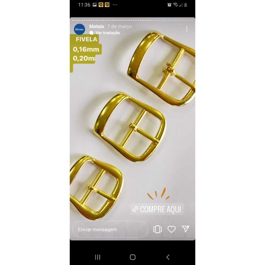 Descrição Fivela de metal dourada para cintos e Bolsas Dourada 20 mm Fivela de 20 mm metal com excelente acabamento e durabilidade. Utilizados em cintos e pulseiras femininas e masculinas, Características da fivela de 20 mm: - Cor: Dourado ou Prata - Material: ferro Kit com 10 e 30 Unidades Medida interna: 15mm Medida externa: 20mm Qualquer Duvida Estamos a Disposição Boas Compras