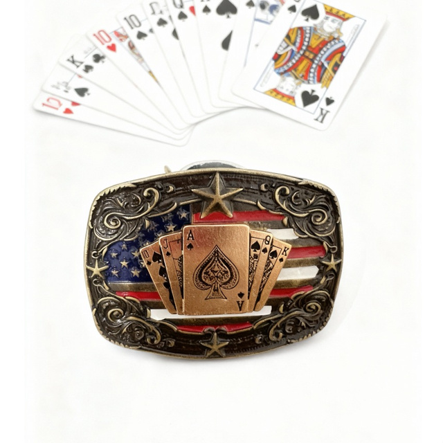 Fivela Envelhecida Contry Baralho Peão Cowboy Metal Alto Relevo
