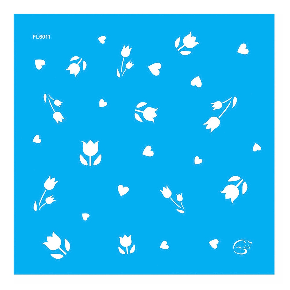 FL6011 - Fundo Mini Tulipas - 14x14 - Stencil Gatas Arteiras