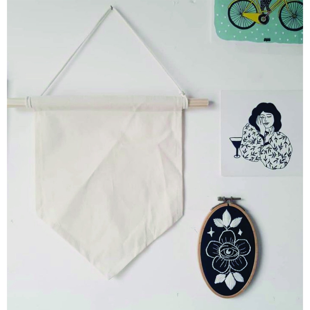 Flâmula de algodão para bordar ou pintar. Produto acompanha madeira e cordão para pendurar. Medidas 25x30 cm, essa medida total da bandeira O cordão dobrado mede aproximadamente 40cm. Tecido suporta tintas variadas e da para encaixar o bastidor para bordar sem problemas, pois é o mesmo tecido que é usado pela maioria das pessoas no bordado com bastidor.