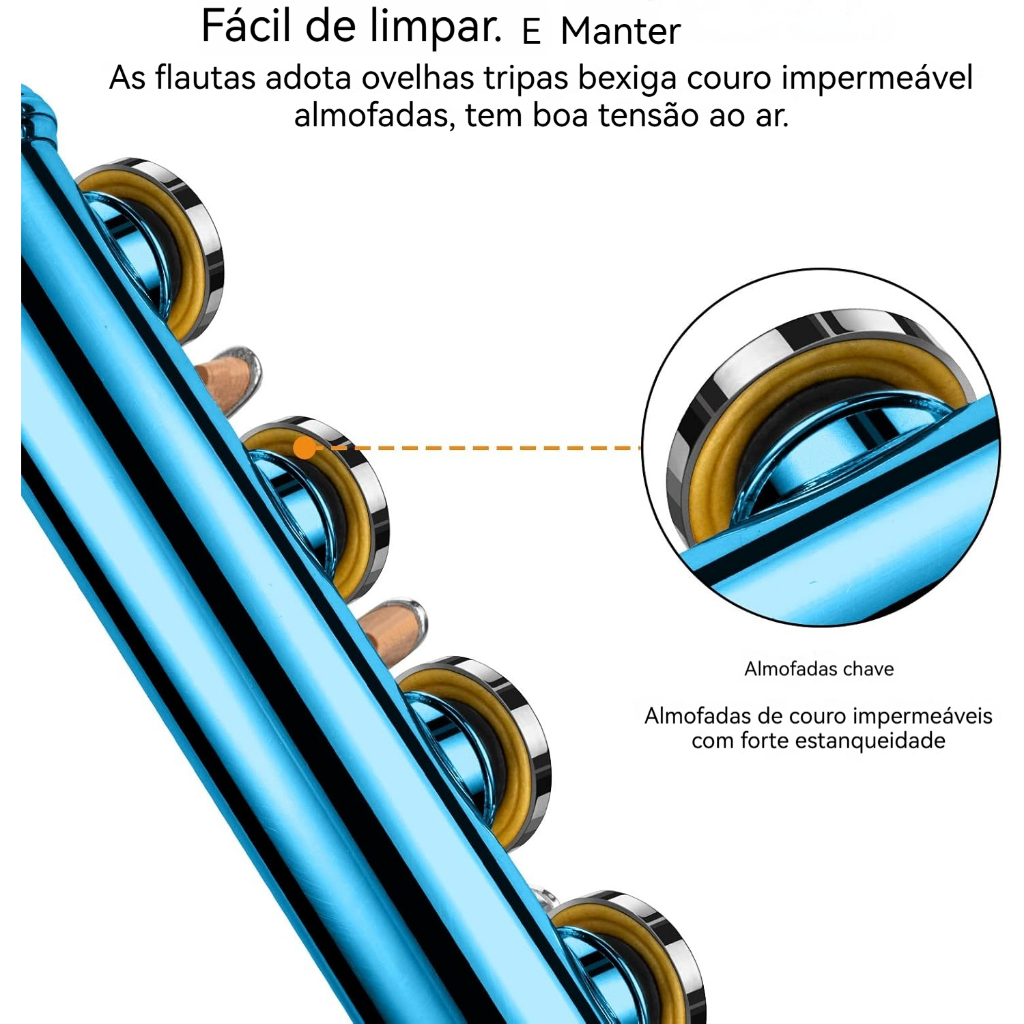 Flauta, Instrumento de Flauta de Furo Fechado C 16 Teclas, Estudante para Iniciantes e Músicos Avançados, Vem com Kit de