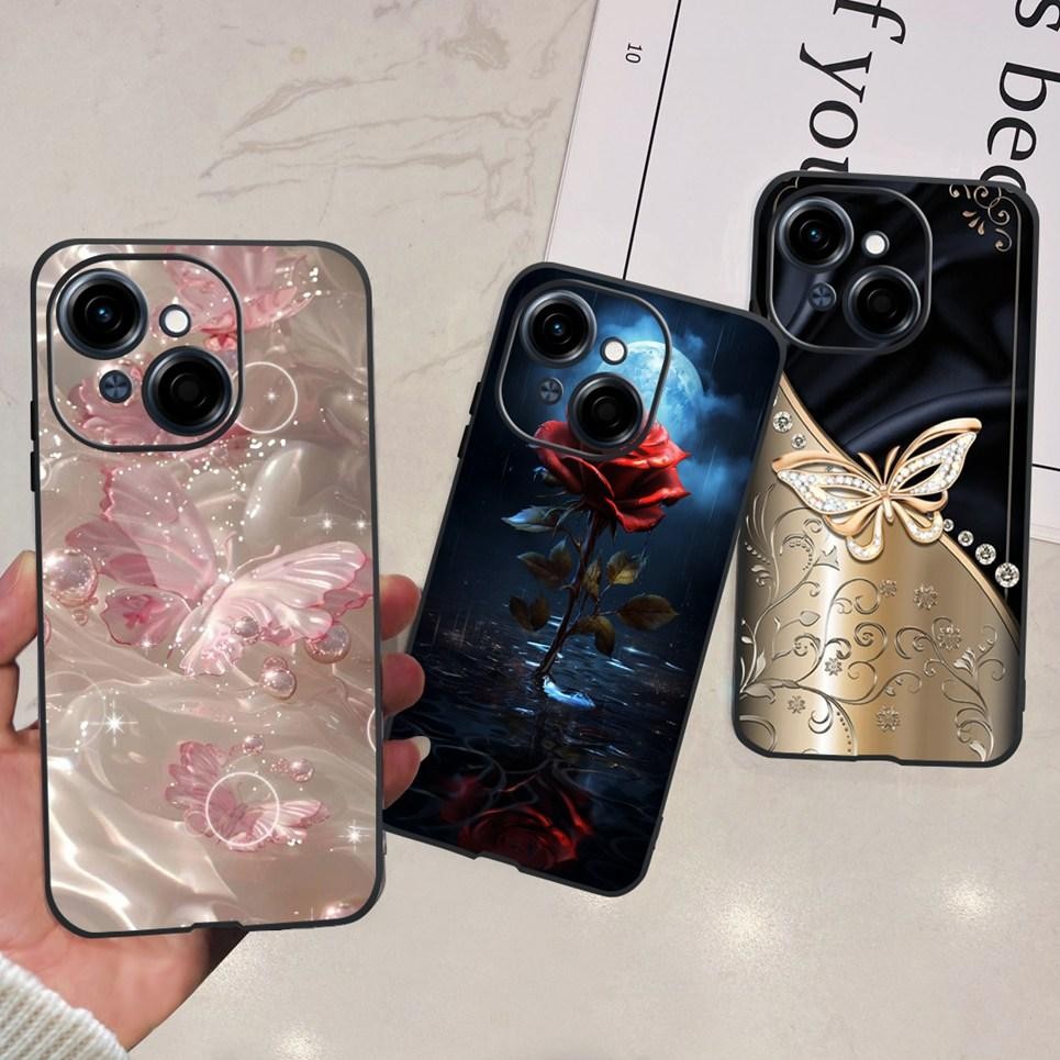 Flor Borboleta Moda Feminina Capa Traseira Tecno Spark GO 1 2025 Caixa De Telefone Fosco Macio TPU Silicone GO1 GO2025