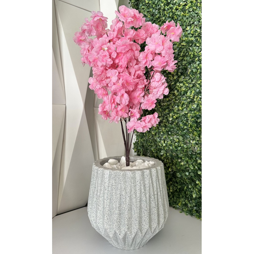 Flor Cerejeira Pessegueiro Artificial + Vaso Origami Pedra