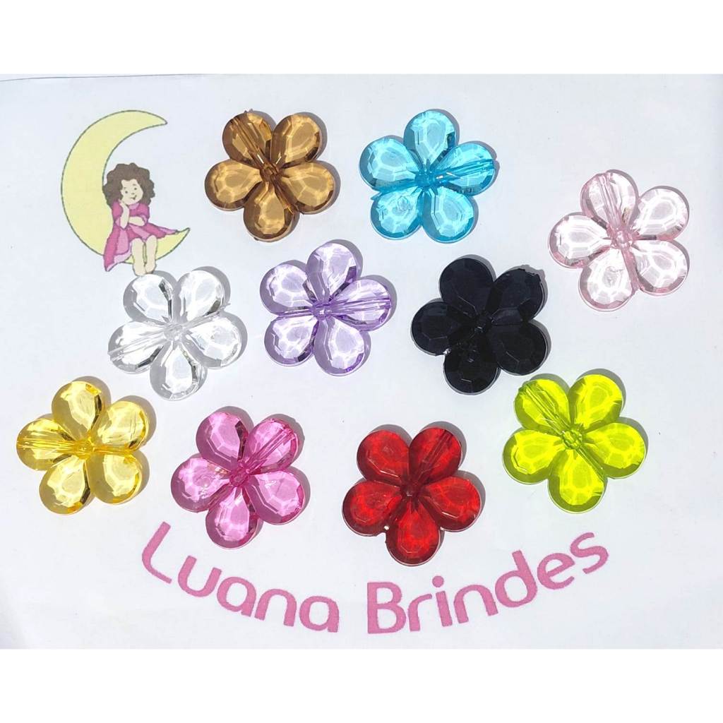 Flor de acrílico colorido com furo passante 3cm Pacote com 20 unidades