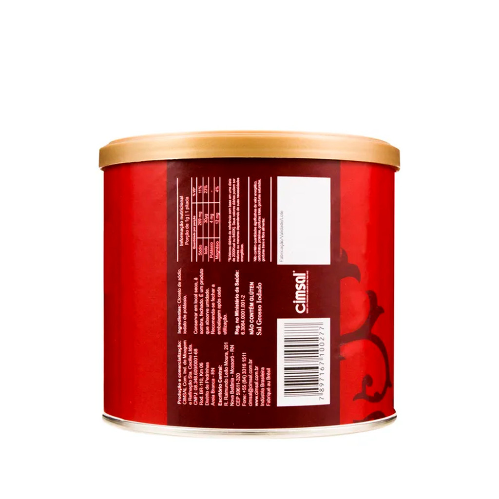 Flor De Sal Cimsal 350g Sal extraído da própria natureza e seco ao sol, gerando raros cristais da mais alta qualidade gastronômica. A técnica usada no Brasil para a extração da Flor de Sal pela Cimsal, é a mesma das salinas francesas. Os cristais são coletados cuidadosamente e manualmente em períodos específicos nas superfícies das salinas na Costa do Sal, Mossoró/RN e secados naturalmente ao sol, depois desse processo, tudo é envazado manualmente pelas artesãs, constituindo assim um produto natural da mais alta qualidade. Temos a Flor de Sal em 2 versões, 1 kg que é embalada em envelopes plásticos lacrados e em latas 350gr lacradas e com tampa. Benefícios: Ganho na qualidade da alimentação sem nos preocuparmos com o alto consumo de sódio, pois o teor de cloreto de sódio encontrado nesse sal, que é o principal componente, é relativamente baixo. Por conter magnésio, um dos primeiros componentes a precipitar-se nas superfícies das águas, realça naturalmente o sabor dos alimentos, tornando-se também uma alternativa aos adeptos da qualidade de vida saudável. Características: – 100% natural e artesanal – Sem adição de produto químico – Contém grande quantidade de nutrientes; – Mais de 80 minerais e oligoelementos – Considerado pelos chefes de cozinha como o suprassumo da alimentação, o ‘Creme de La Creme’. Aconselha-se a não usar a Flor de Sal no processo de cozimento dos alimentos ou seja, não deve ser aquecido, isso faz com que se perca suas propriedades e benefícios, dessa forma, use para finalização dos pratos, assim como nas saladas, pois além de deixar um visual mais bonito, realça o sabor do alimento.