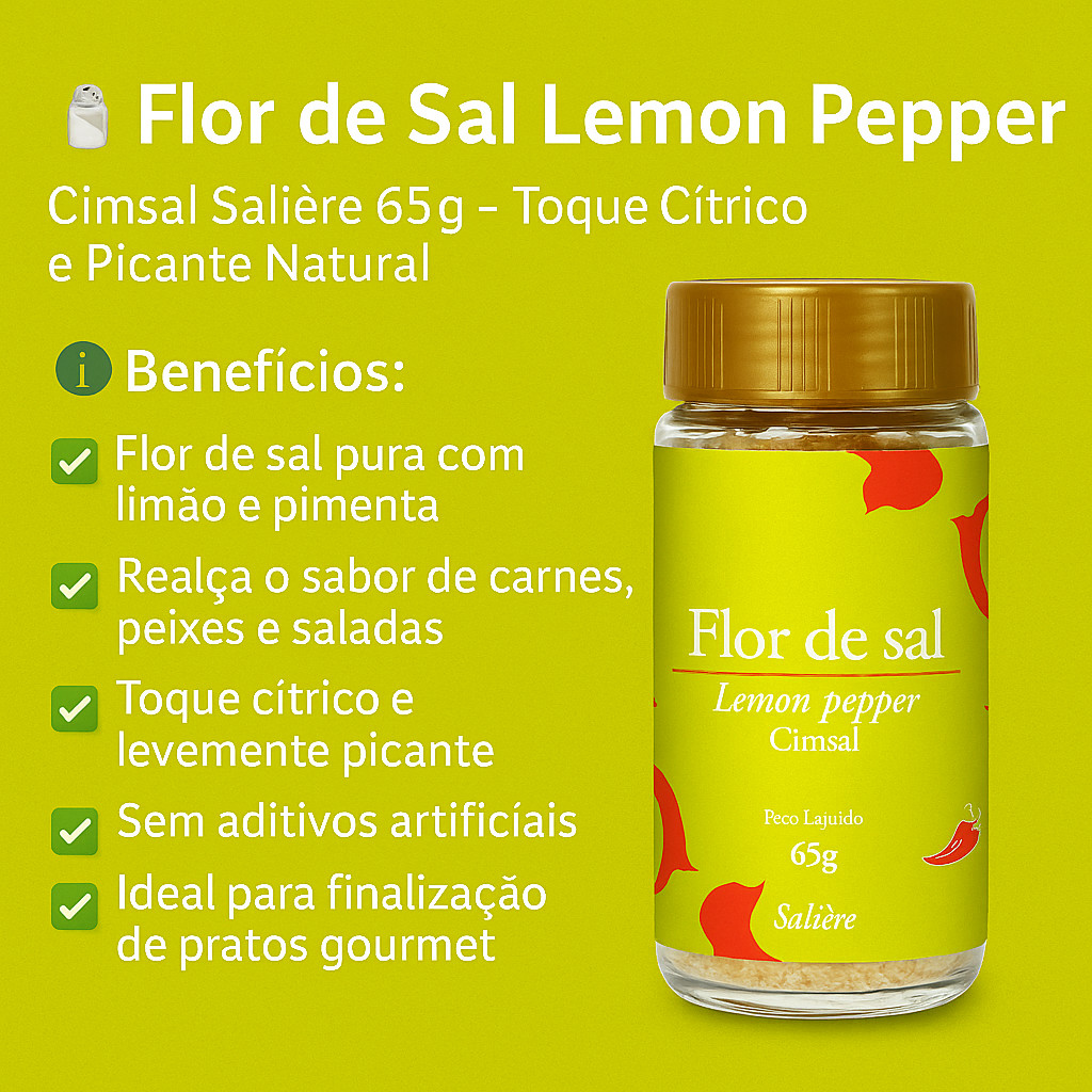 Flor de Sal Lemon Pepper Cimsal Salière 65g – Toque Cítrico e Picante Natural
